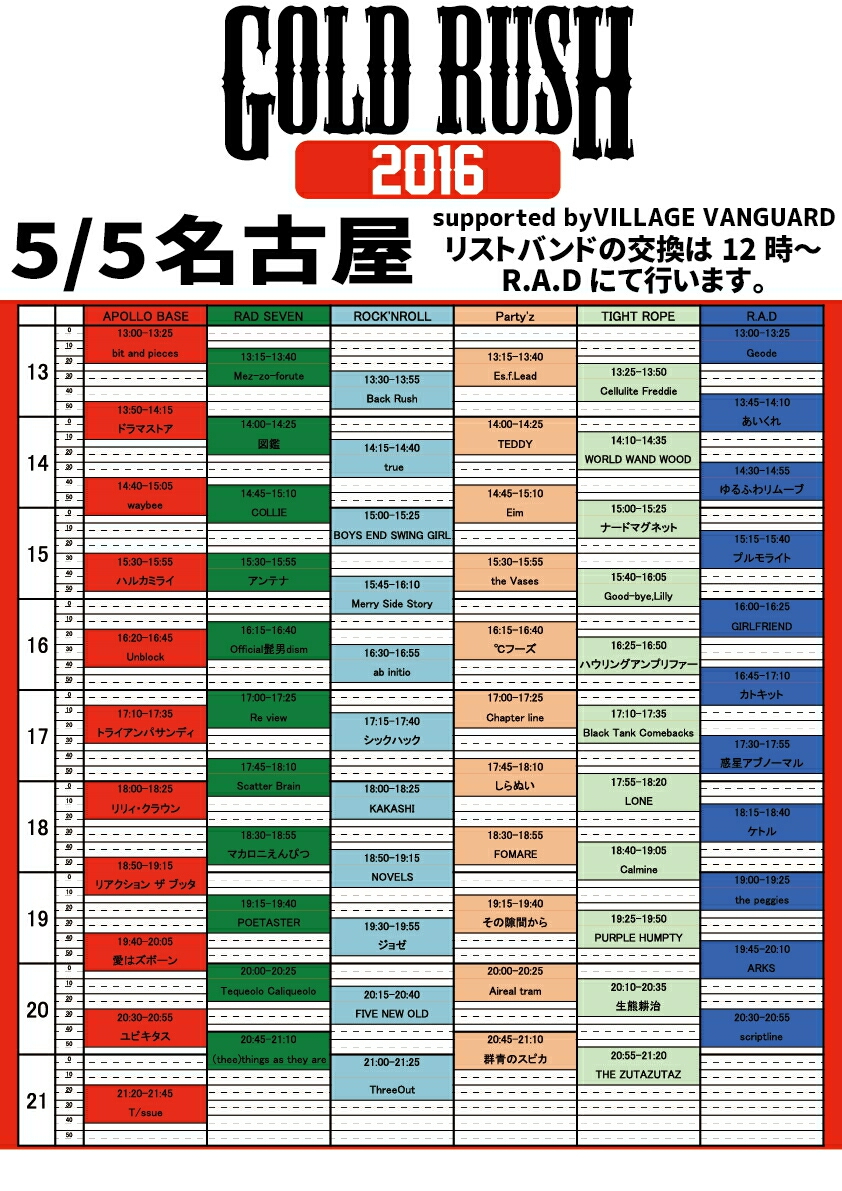 ・各会場への入場はGOLD RUSHの各チケットをリストバンドに